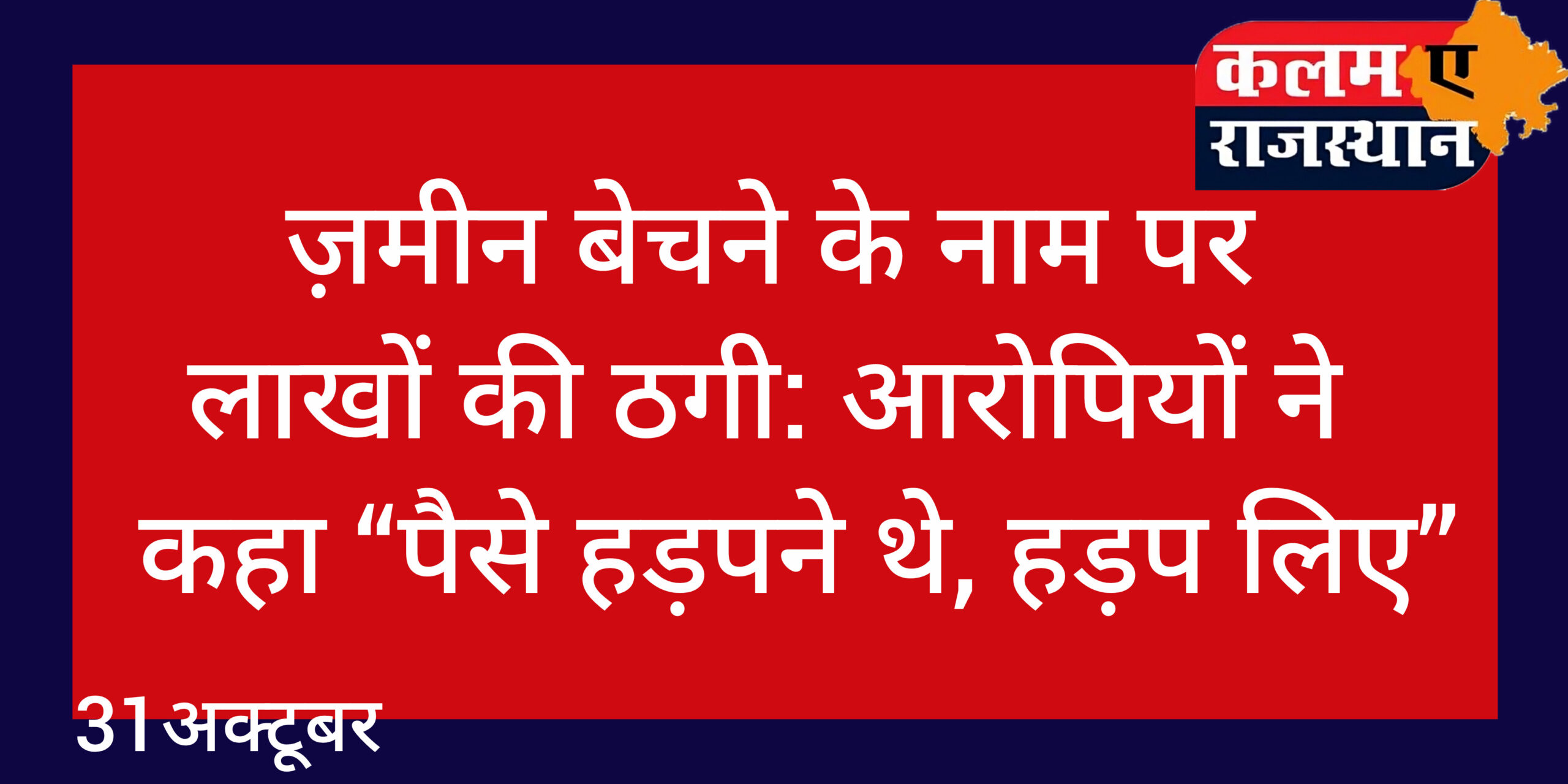 श्रीडूंगरगढ़ : श्रीडूंगरगढ़ क्षेत्र में एक व्यक्ति से ज़मीन बेचने के नाम पर लाखों रुपये की ठगी का मामला सामने आया है। पुलिस ने पीड़ित की रिपोर्ट पर दो आरोपियों के खिलाफ मुकदमा दर्ज किया है।